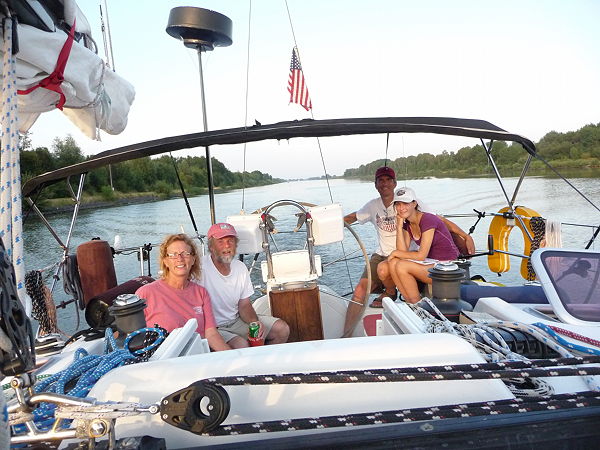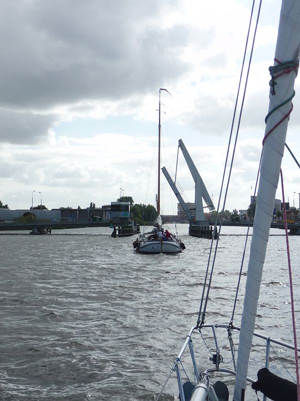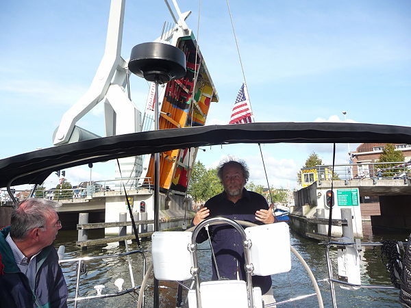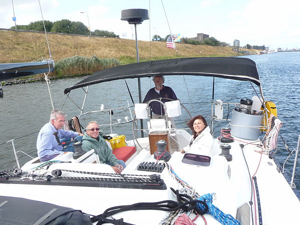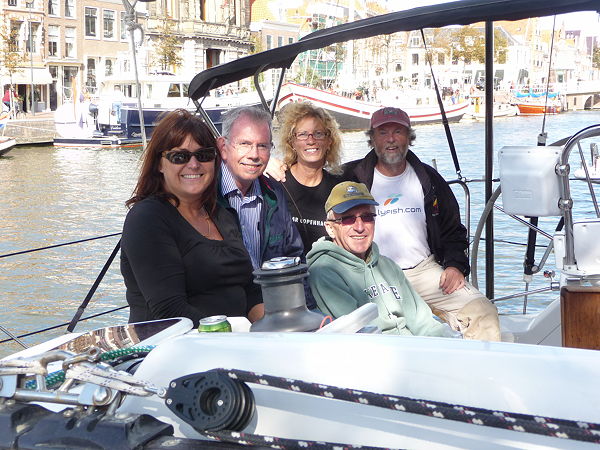 After a summer of ocean sailing, the “stand mast” canal crew, Janet, Larry, Ron, Ken, and Kristine, joined the Grateful Red and motored with her 62 foot mast upright from Ijmuiden ”the harbor of Amsterdam” through Holland, over the six lane highway with a stop in Leiden, and finally to Bruinesse, Netherlands for the winter season.