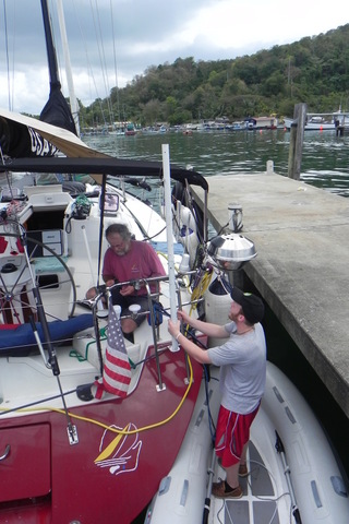 Beth and daughter Kat joined Scotty, Kristine and Ken to cruise the ABC Islands – Aruba, Bonaire and Curacao. Paperwork was done at commercial run down ports, not much of a cruiser crowd coming to these islands. Found a slip at a high-end Bonaire resort – lots of fun, with pools and bars. After a week, arrived at the Renaissance marina in Aruba – site of the 2013 Grateful Red Party.