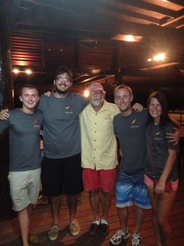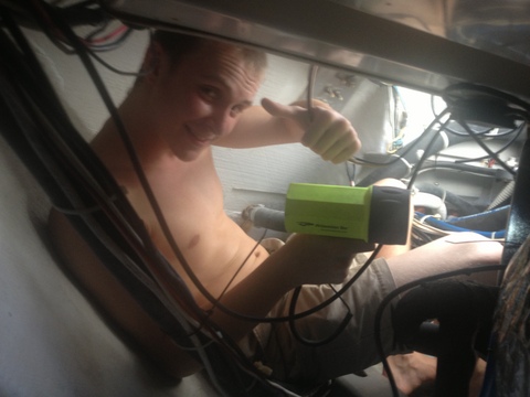 The new Grateful Red sail drive from Sweden got hung up in St. Marteen so when Ken arrived, no sail drive, no motor and little action. Call to Volvo US. Fedex and a credit card, new sail drive in three days. With tons of help from Kyle, Garrett, Kristi and Charlie – a five day visit by instrument guru Paul and seven days of work – plus a Kyle-organized blender party – the Grateful Red was splashed at 3PM, new sail drive test run for an hour and then departure at 4PM on an overnight to Trinidad for Ken\’s birthday and Charlie’s successful summer intern internet interview.