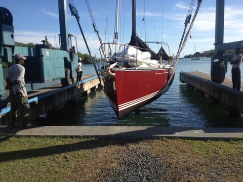 Gordy, Gary and ken spent three days at various Grenada marinas getting the Grateful Red in the water for the 2013 season. A successful splash and sail to Union Island, Tobago Cay and back to Port Louis, Grenada was too eventful for pictures. The Grateful Red sail drive failed – could only go forward and only at four knots. docking at four knots draws a crowd. A bottle of Kopke port was drank after ordering a new sail drive from Sweden.