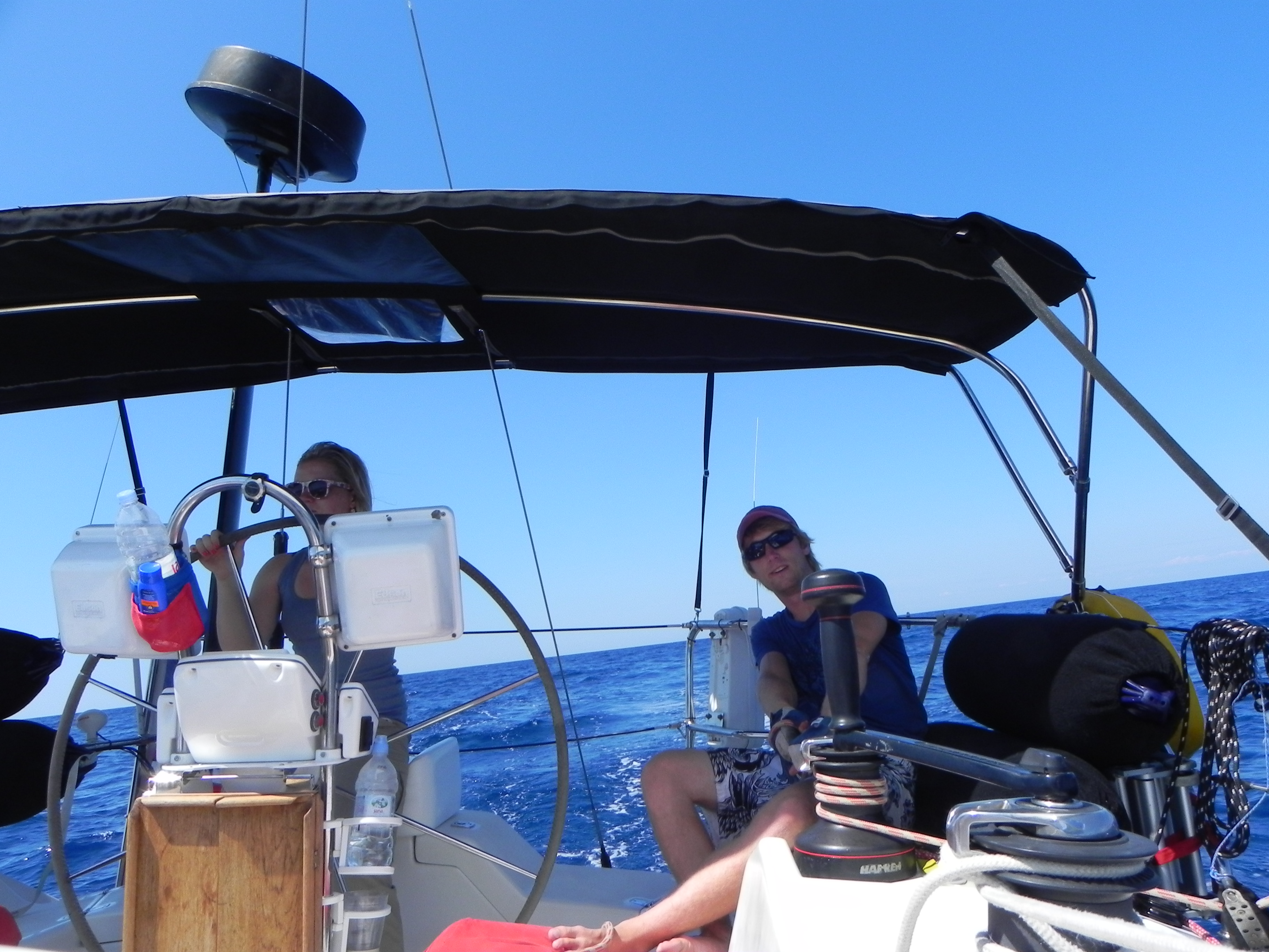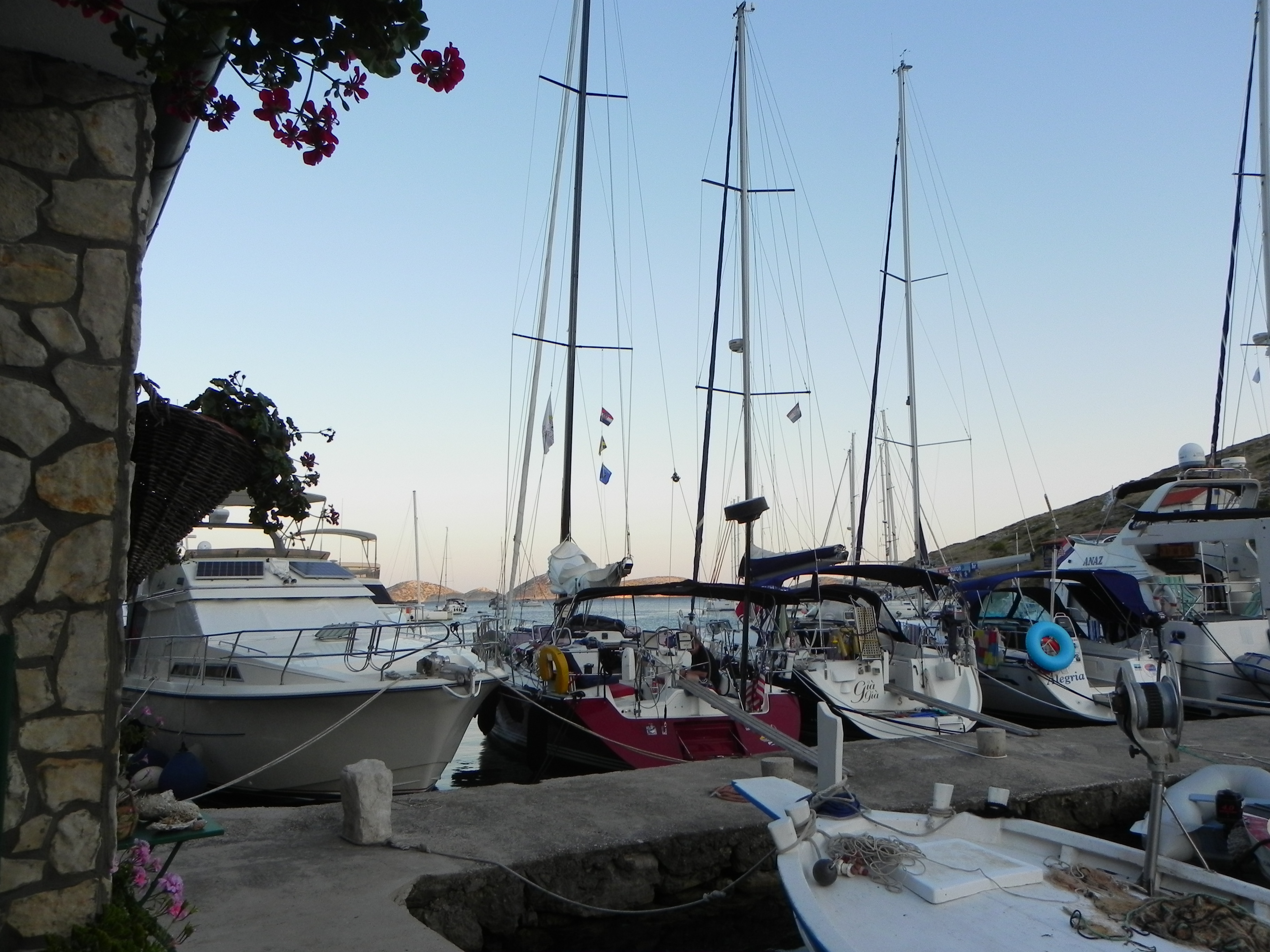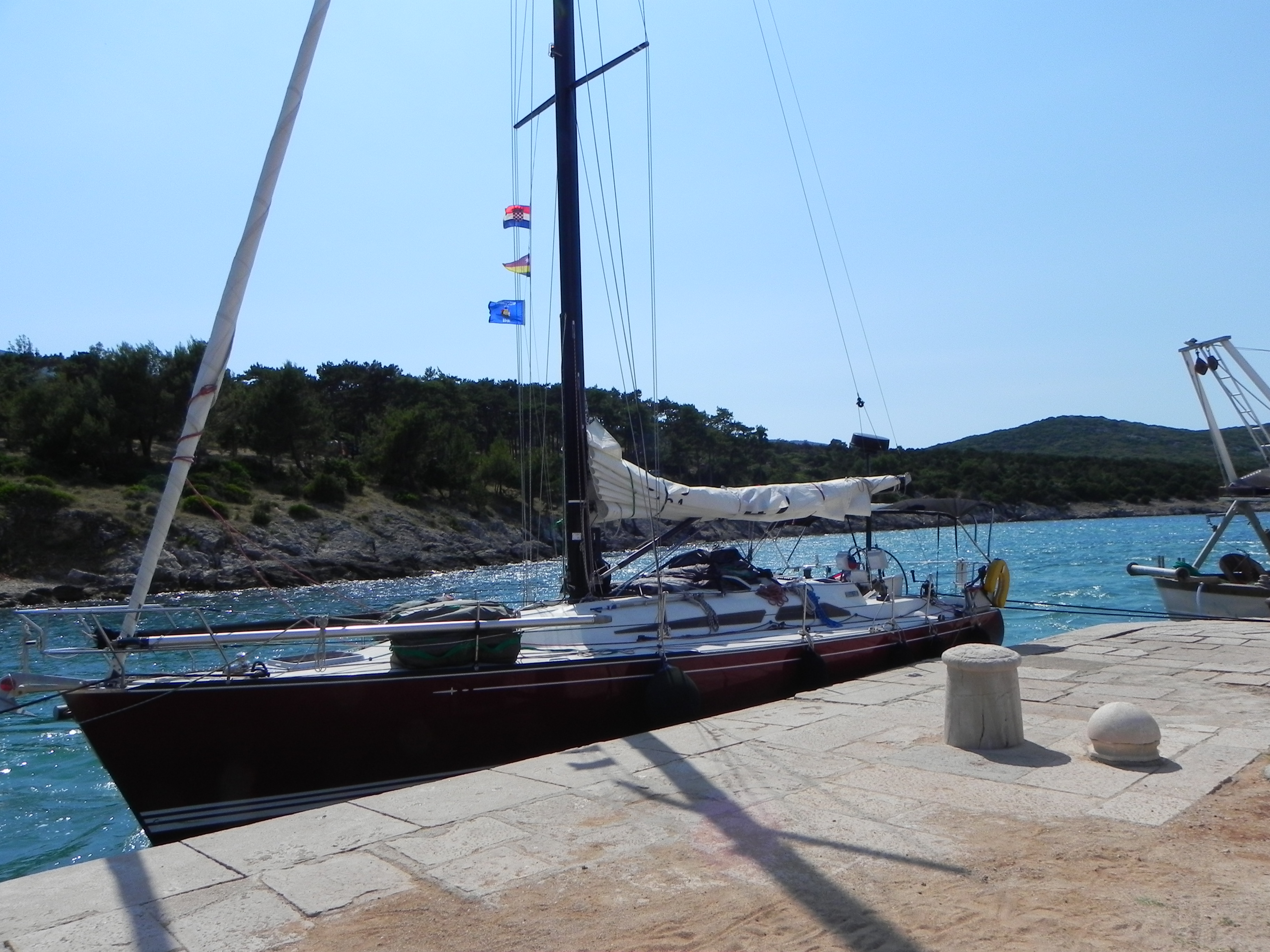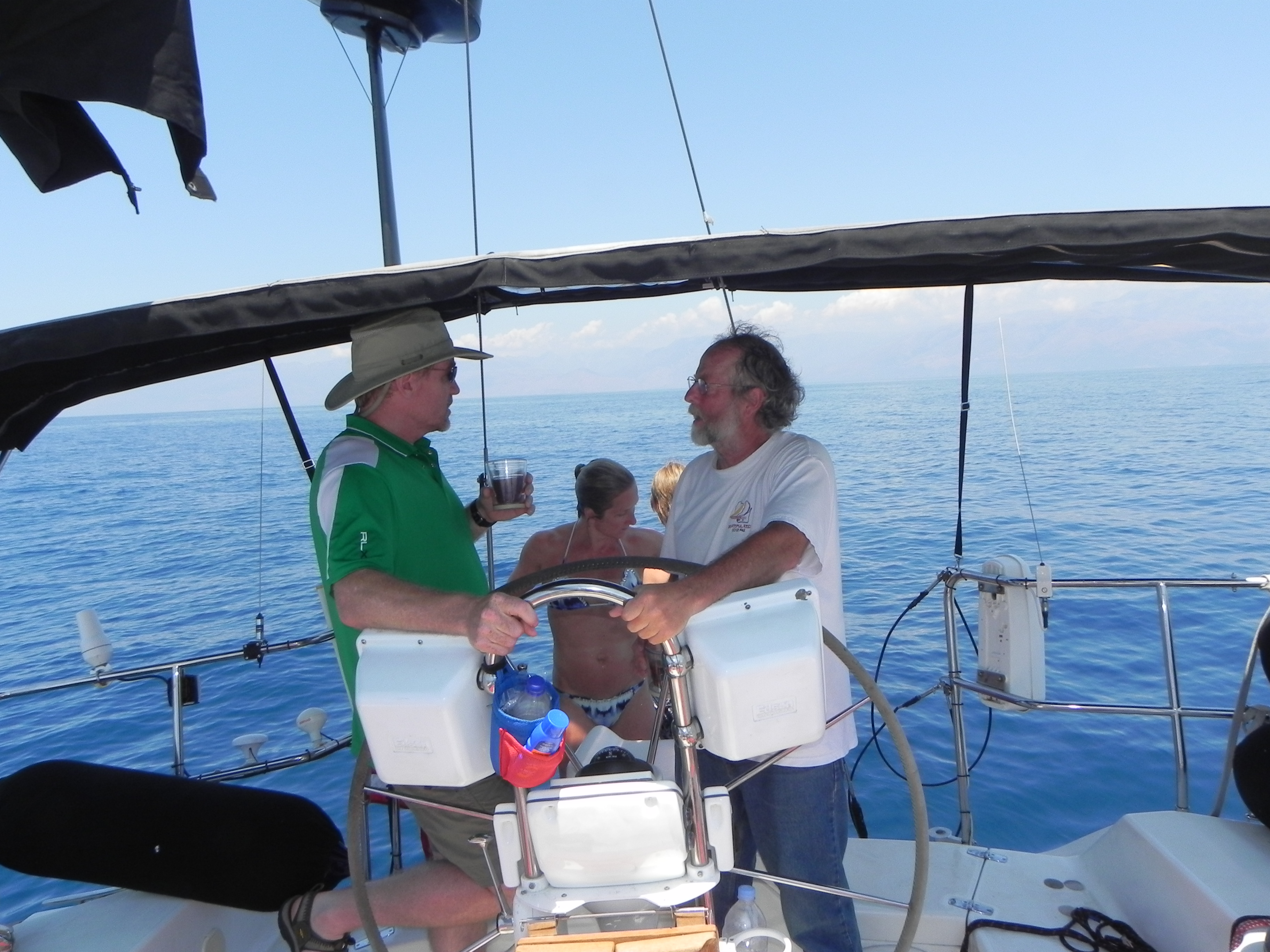 Donley Cruise – Cres to Corfu After the low wind ORC regatta the new crew of Beth, Brian and Kat brought wind with them. The Donley cruise was from the island of Cres, Croatia to Corfu island in Greece. Five hundred miles of sailing with such famous islands as Losinj (had a nice swing bridge), Dugi Otok (the long island), the Kornati archipelago – a Croatian national park of over 140 islands and finally the island of Vis – the last of the Croatian islands. A quick overnight and the Grateful Red was in Greek waters. When the Greek god Poseidon fell in love with the beautiful nymph Korkyra he abducted her to the island of Corfu to be certain no other god saw her and they would have martial bliss. Wonder if this strategy worked. The capital of Corfu is the city of Corfu – a city from when Greece ruled the world. Jumbled streets, small shops and a terrific night light. Perfect place to stop and change crew.