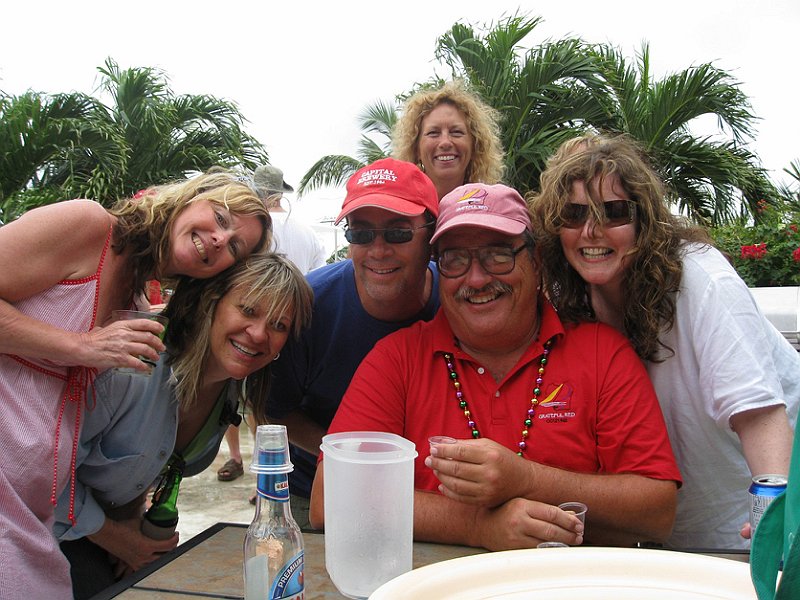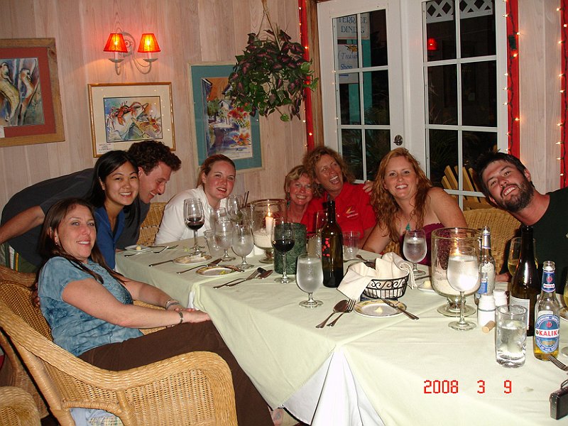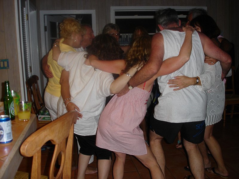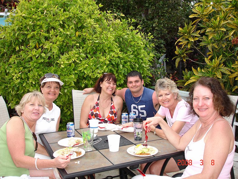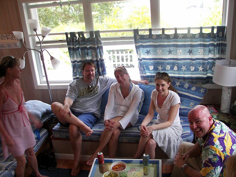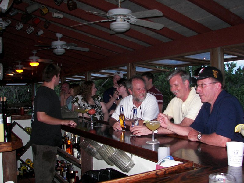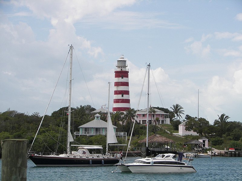 The first on-the-road party. Fly in to Marsh Harbor, ferry to Hopetown. Villas had small skiffs for transport–no cars here.