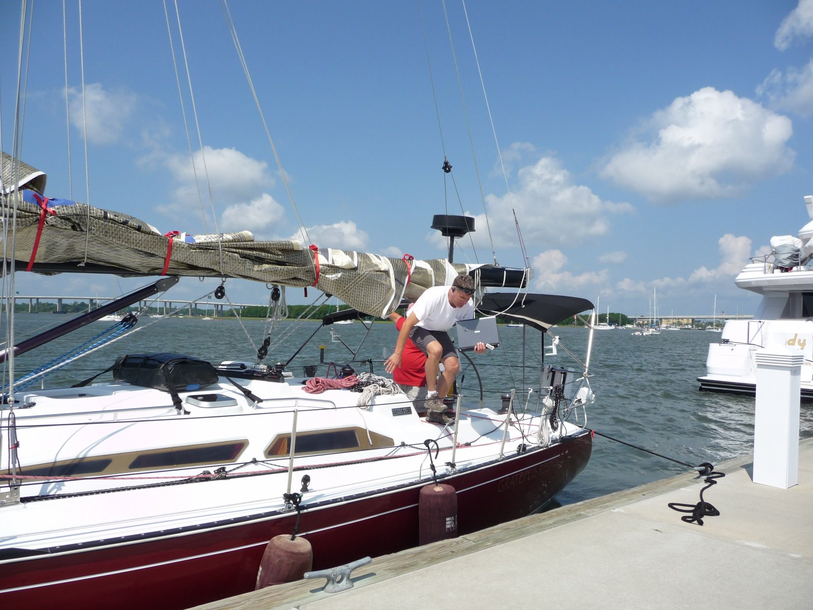 First leg of the ocean crossing was the Charleston to Bermuda regatta, only nine boats in the regatta and three days of low (I did mention low) winds. The crew of Bridgette, Mark, Jack, Curtis, and Ken did a little sailing and did a little swimming but finally arrived at the Royal Bermuda yacht club with a third place finish and land crew of Cissy and Kristine.