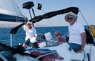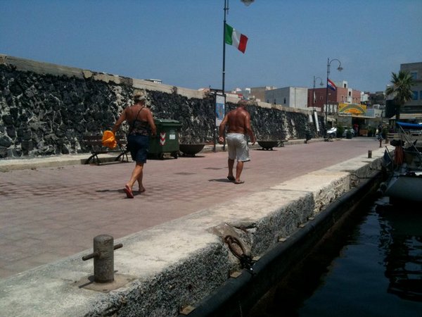 Tunisia was the first North African stop – site of the first Arab spring demonstrations, no functioning government and the Grateful Red was a little short of documents. Management decision was to go to a small Tunisian port that had little experience with red American sailing vessels and hope for the best. Sidi Daoud was our first port of call. Definitely never seen a red American sailboat in fact there were no sailing vessels of any kind in the harbor only working fishing boats, oily water and a broken down wharf. The local authorities were on us with paperwork (yes the forms were in triplicate using carbon paper – no computers here). While Ken did paperwork Fred mingled with the locals. How –I am not sure since the locals spoke Arabic and some French and Fred spoke English and some Spanish. After a couple hours the paper work was done and one of Fred’s local buddies comes over – psst, psst with the crooked finger. We immediately think the worst – illegal and drugs – but Omar wins out. Fred and I follow Omar to the triple locked cement incased shed – inside is not drugs …. no there is a small pool of water and the biggest lobsters. A deal is immediately struck. Fred and Ken return to the boat as the “great white hunters’ showing the girls our two huge and perfectly legal lobsters. Dinner was terrific. Darkness sets Fred and I are taking the lobster remains on shore – again psst, psst – a wave of the hand. Again we are suspicious but …. the lobster worked out so we follow our friend to the shack where the night soldiers were located. Five nice soldiers about the age of Fred and my children proudly serving homemade cous cous to their new American friends. Not only a great time (and taking pictures of Fred and I with each soldier) but they convinced us to stay another day, we hired a van to drive us around to see the local sites including the ancient town of Kerkoane. Our best time.