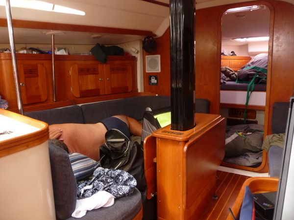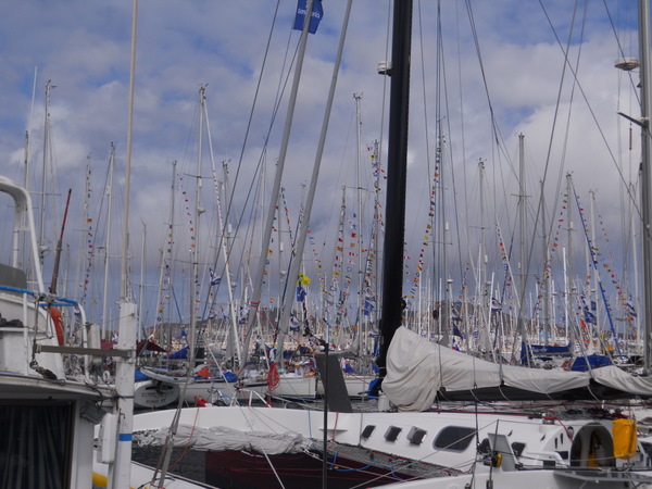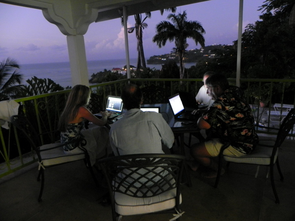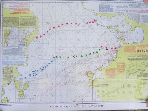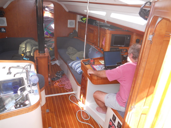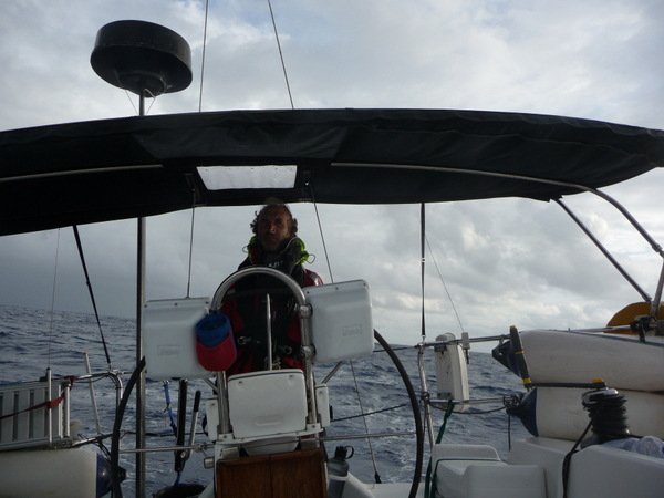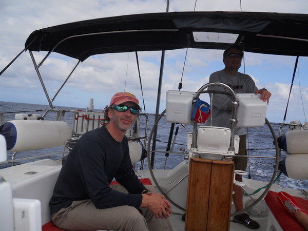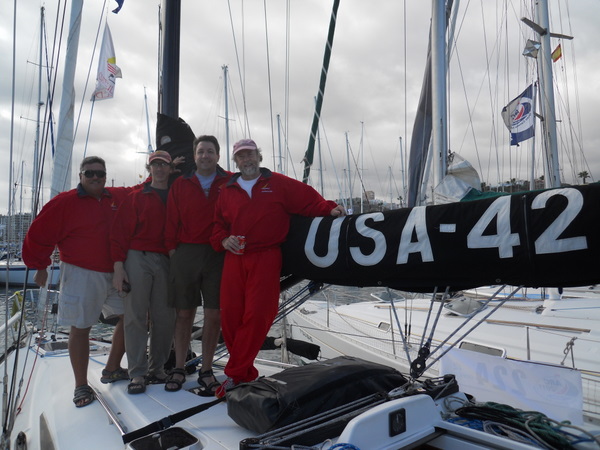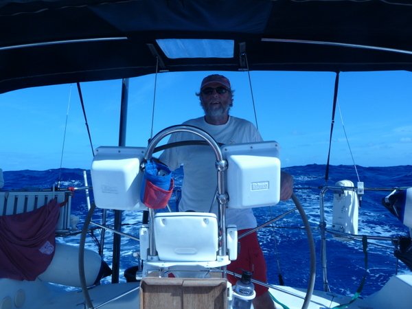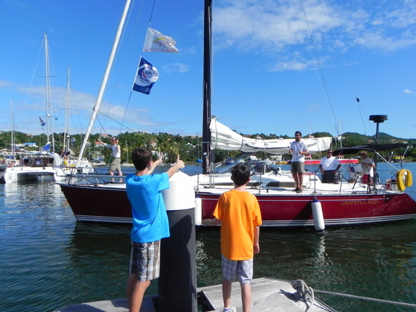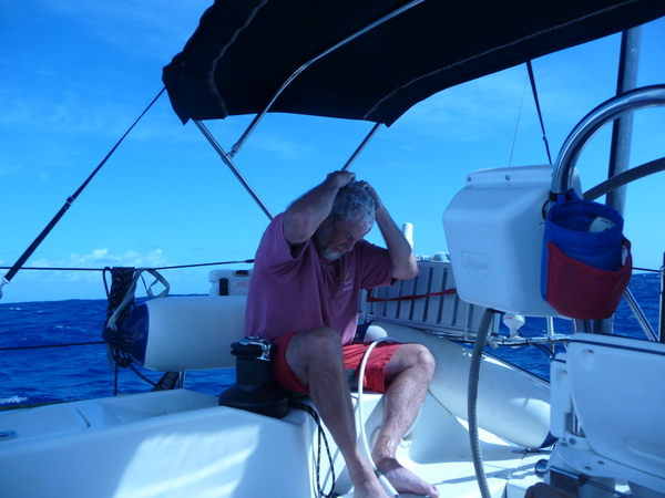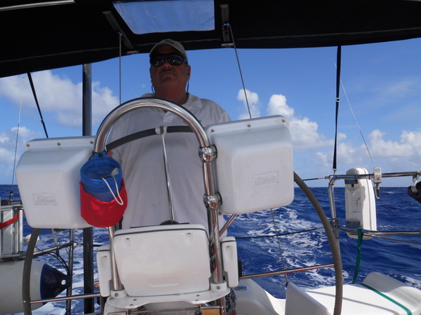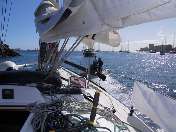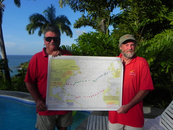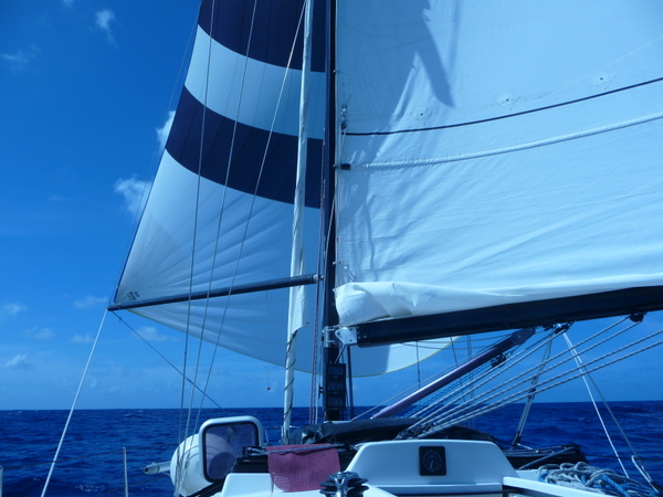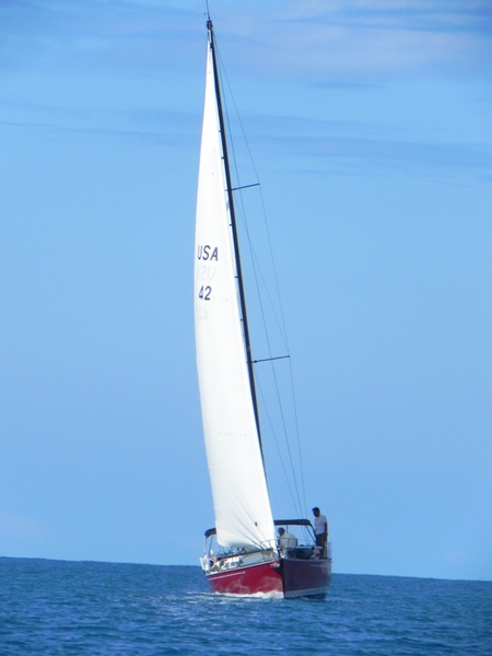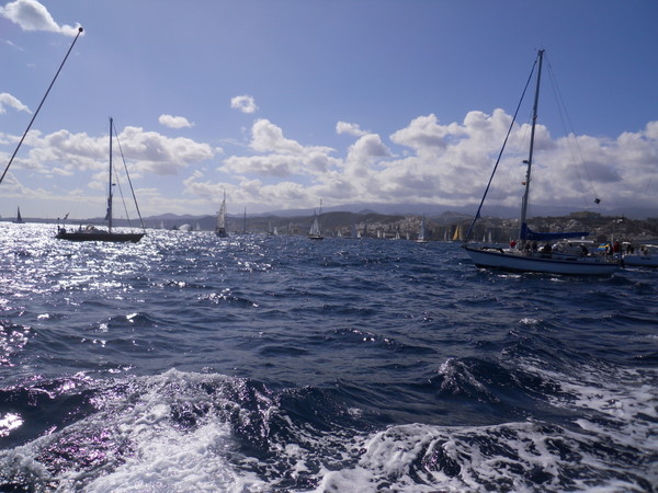 /in 2011, Crossing, Cruise/by KristineAfter a successful Gibraltar to Las Palmas sail the Grateful Red had a number of instrument issues primarily no auto pilot. Paul the instrument guru was flown to Las Palmas for onsite part change out and repair with Ken helping. With repairs ongoing the crew of Curtis, Jack and Mark arrived. In the ’09 crossing Curtis, Jack and Ken crewed the Grateful Red the 2,300 miles from Bermuda to the Azores. For the 3,000 mile return crossing from Las Palmas off the shore of Africa to Saint Lucia in the Caribbean – the earth is fatter in the middle -Mark joined the “crossing” crew. A successful safety inspection by the race committee, rounds of preparatory beverages and completed instrument upgrade the start date arrived with the boat ready. The Atlantic Rally Crossing ’11 had approximately 250 participating boats, about 10 catamarans/90 monohulls with an average boat length of 57 feet and the shortest boat was 32 feet – the Grateful Red at 40 feet was on the small size. As the Grateful Red motored out of the Las Palmas slip the throttle cable broke – boat could not be motored – a 3,000 mile sail and the Grateful Red was towed to the start line! The start was windy, crowded and a blast. For the first 15 days the winds, weather and crew were terrific. Fifteen to twenty five mile an hour winds, downwind sailing – spinnaker all day at eight plus knots, drop the spinnaker in the evening and sail reefed main at six to eight knots at night – fabulous sailing. The Grateful Red was on target for a 17 maybe 16 day crossing hopefully beating the 17 day crossing accomplished by Mr. Columbus in 1492. Life is good.